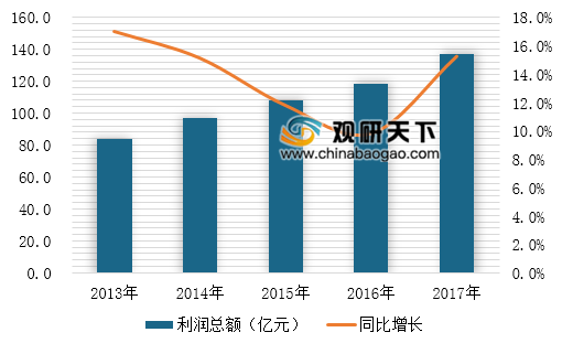 行業(yè)發(fā)展戰(zhàn)略大調(diào)整,全行業(yè)利潤總額保持逐年增長。2017年,玻纖電子紗產(chǎn)品價格持續(xù)在高位運行,玻璃纖維行業(yè)利潤總額為136.7億元,同比增長24.7%。